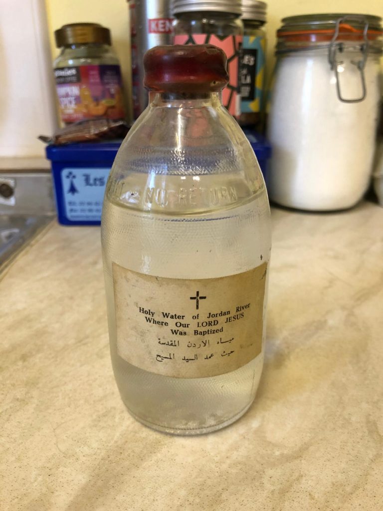 My first reaction was ‘that’s a bit spooky!’, but I quickly moved to, ‘what on Earth do I do with this?!’. Surely, it’s bad luck to throw out holy water… 😅 So, I posted the question to Instagram, hoping to tap into the hive mind for an answer on what I should do with it.
