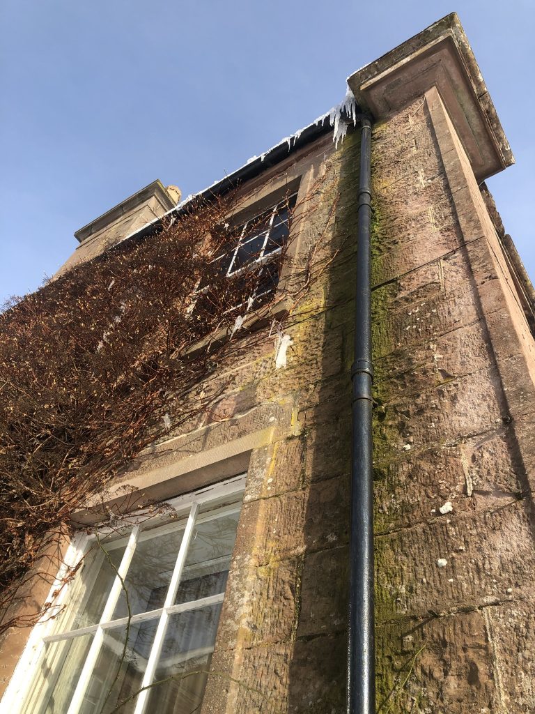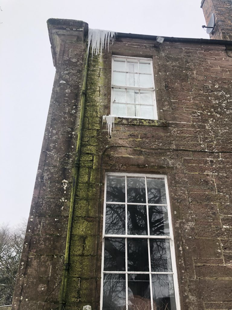 And then, on Day 4 or Day 5, the sun came out and started to melt the snow away, and the house developed some pretty cool icicles (more impressive when you realise the windows are about 8 feet tall!):