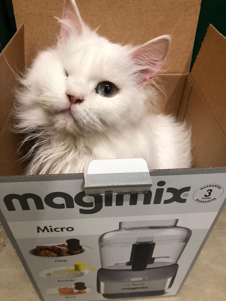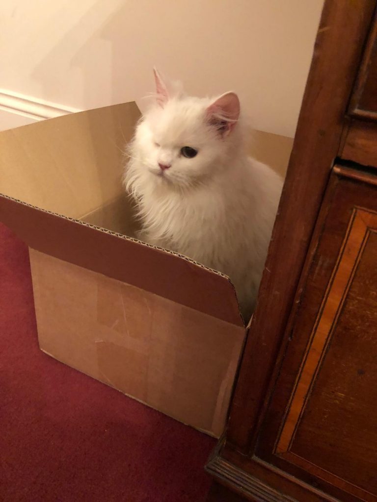 This is another photo of Frazzle looking adorable in a box – the innate love of boxes is truly universal: