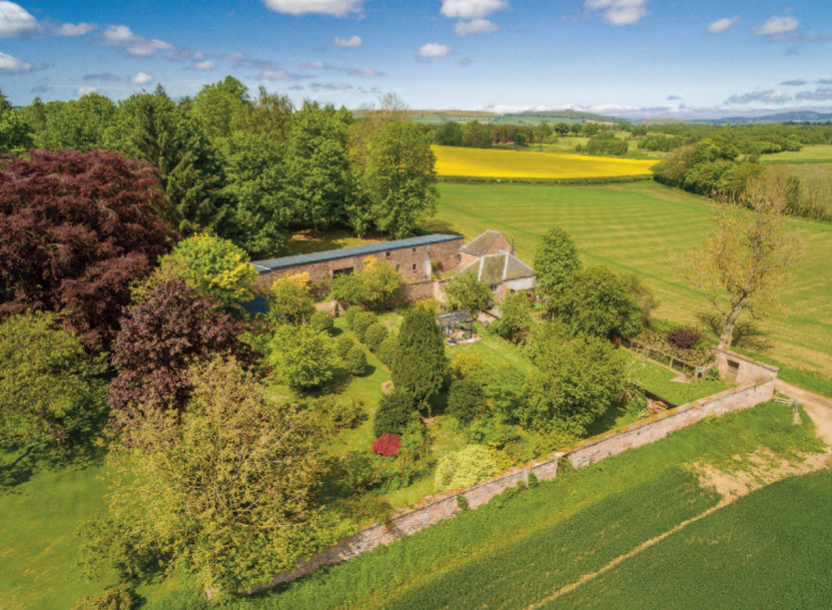 You can just see the roof of the cottage in the upper corner of the walled garden in this aerial shot.