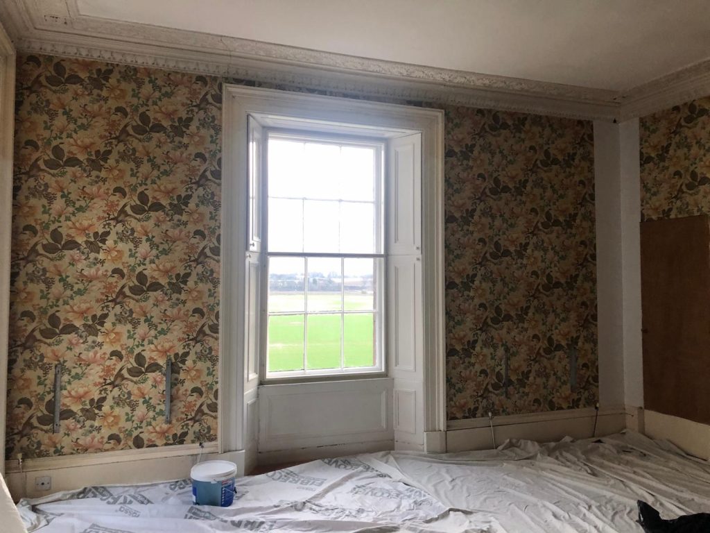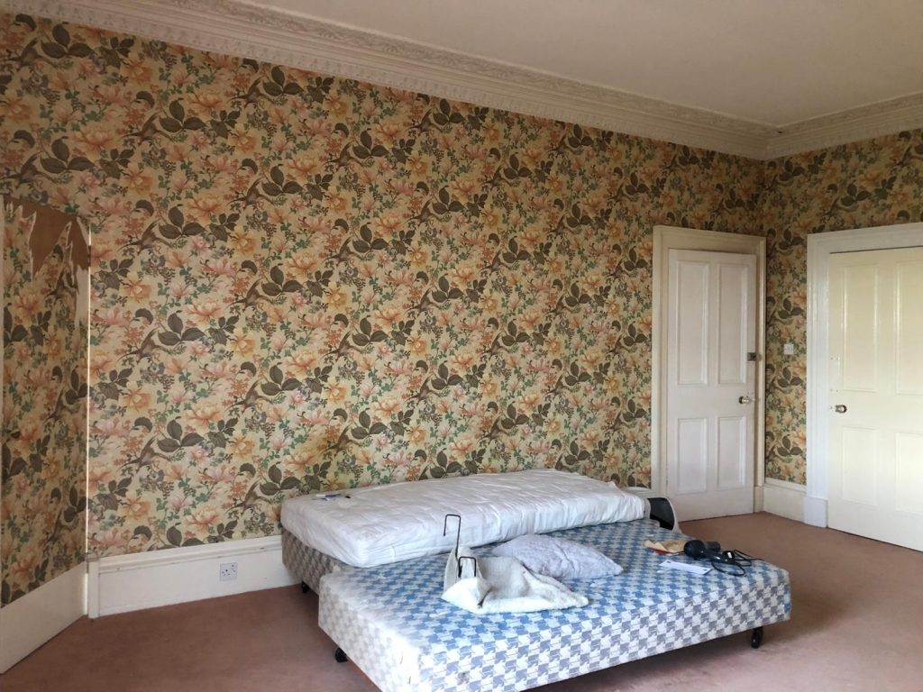 While it had undoubtedly been a pretty room once upon a time, the years had taken their toll on both the carpet and the wallpaper, which were both sun faded and stained – and this was even more apparent when the room was emptied of furniture, artwork, and light fittings.