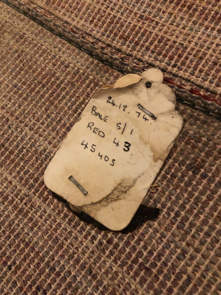 Then, we had to pull up the carpet. Amazingly, when we pulled up the carpet, we found a tag from when it was bought – this carpet was purchased on Christmas Eve 1974! How neat is that to be able to date it so precisely?!