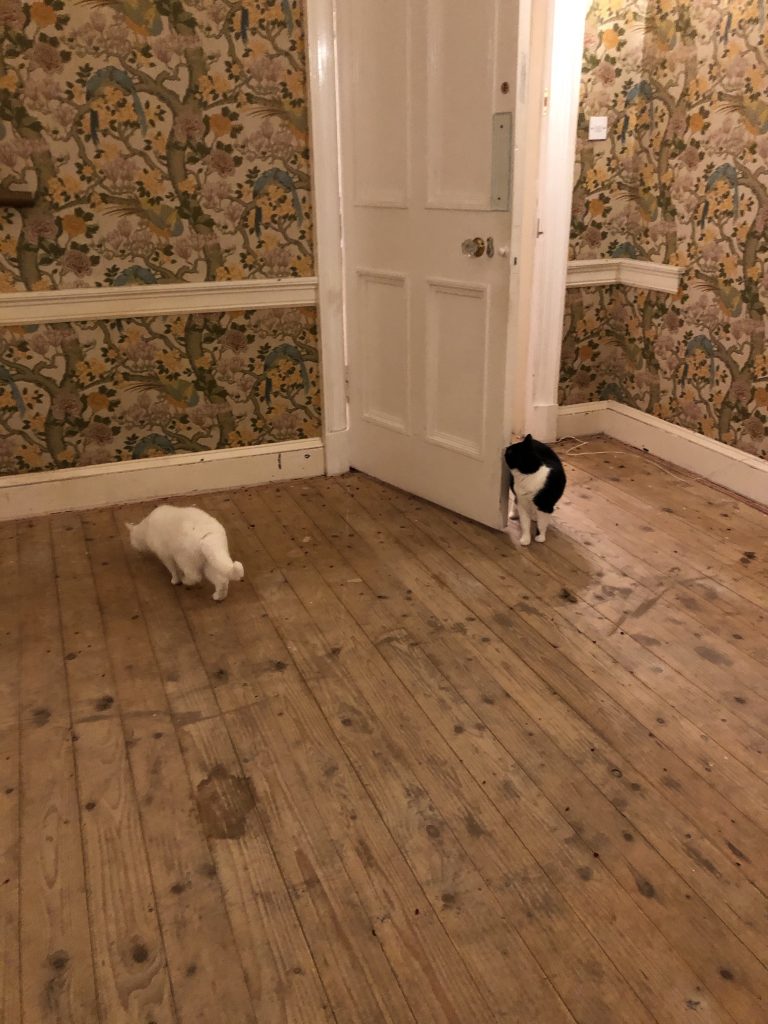 Thankfully, we were in luck – it was WOOD! Yippppeeeeee! I could have my lovely wooden floor 😍 Somewhat disappointingly, they were not Georgian floorboards – we suspect they were 70s era, which ties in with a story the N- sisters told us about an early visiting tradesman to the property falling through rotted floorboards to the cellar below; most likely, these replaced the ones in that were in such disrepair when the N- family bought the property.