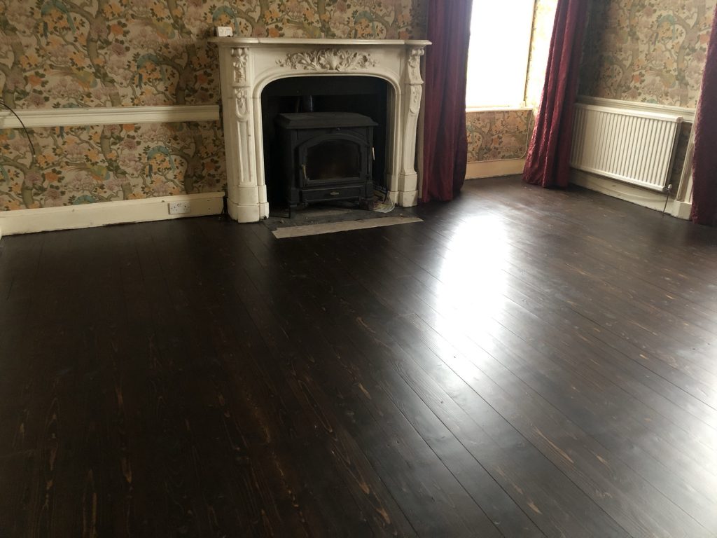 We had discussed a mid-brown with the team and I was a little surprised at the depth of the colour, but it’s hard to know exactly how a stain will take to a floor until you put it on. At this point, I wasn’t 100% sold, but we had committed and I decided to let the work take its course and see how I felt at the end of it. The team left at the end of the first day to let the stain cure with plans to return the next day.
