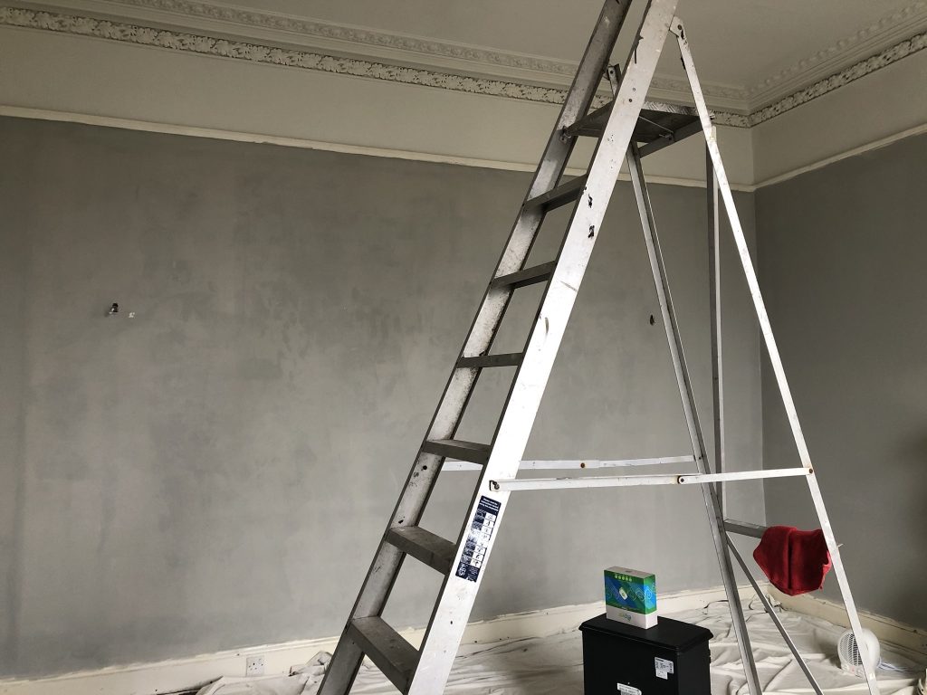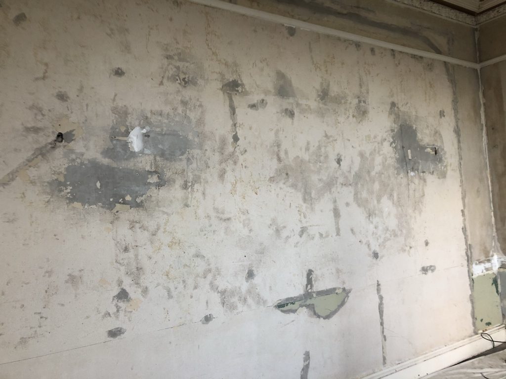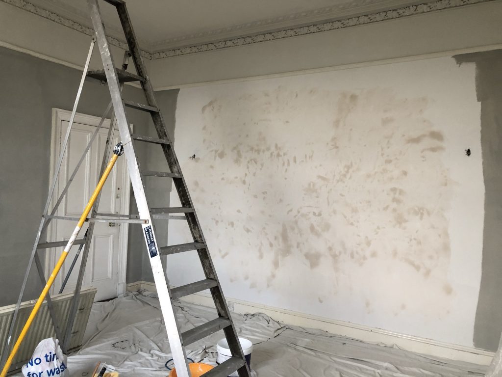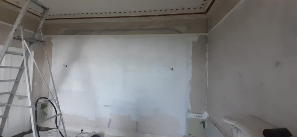 So with that in mind, we couldn’t treat them just like we would any other wall in a typical property. The wallpaper had to be (gently) removed, and as you can’t work directly on lath and plaster, they had to be relined. And THEN they could be worked with!