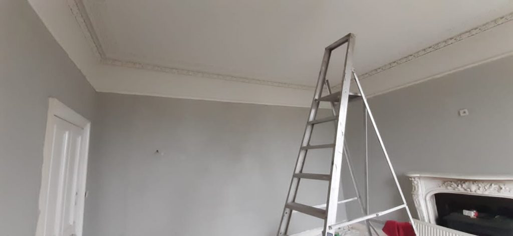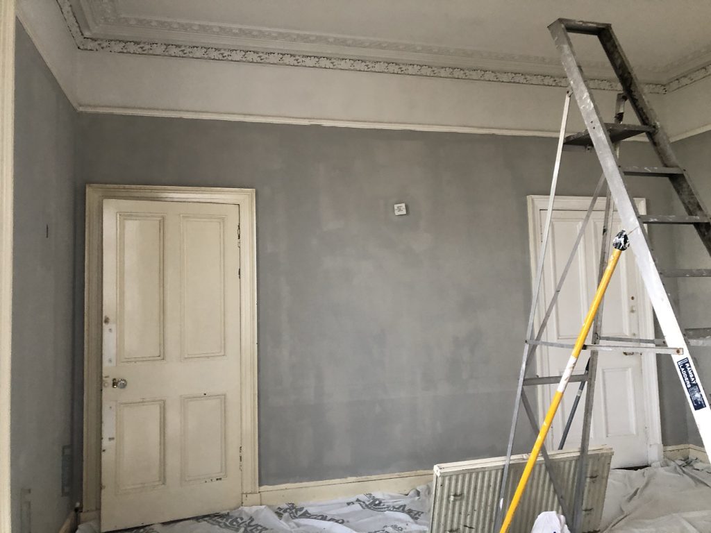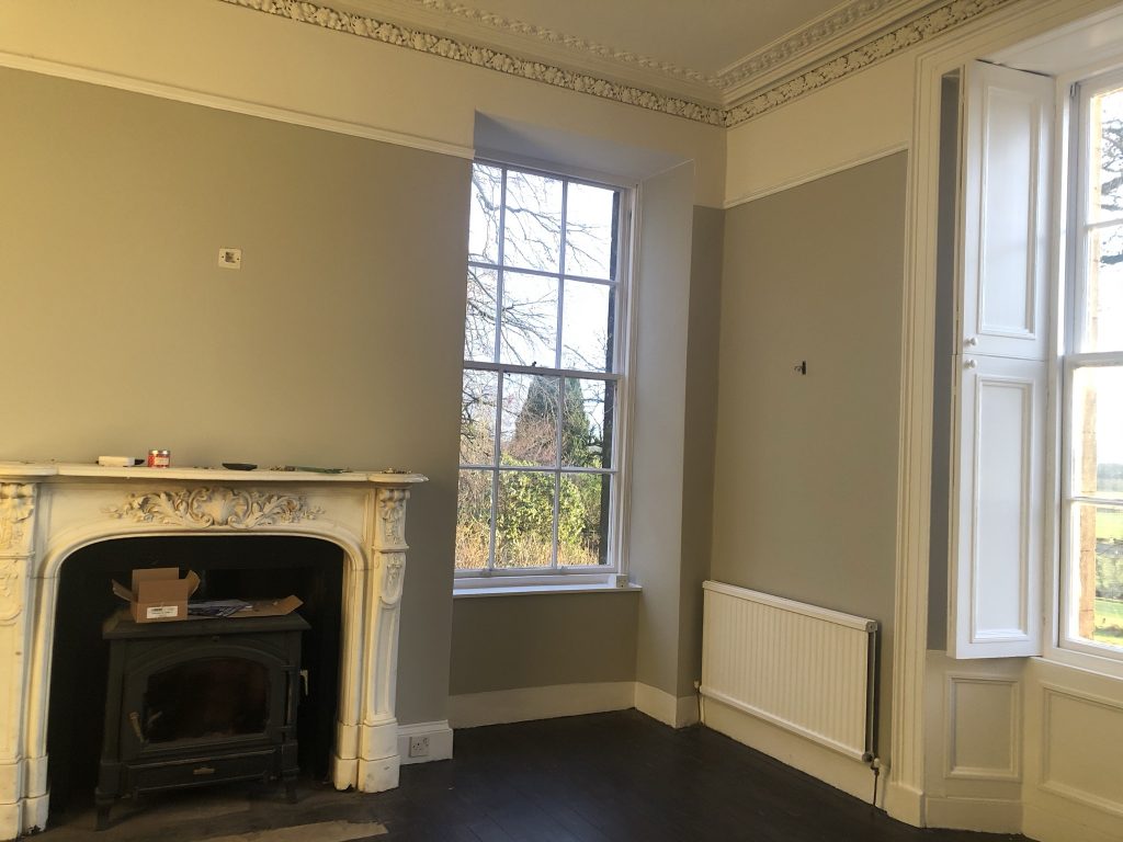 And if you’re wondering, at this point, why we didn’t extend the colour above the picture rail, that is by design! These ceilings are quite high – somewhere in the region of 12-13 feet – so we extended the ceiling colour to the picture rail in an effort to try to make the room feel cosier and less cavernous.