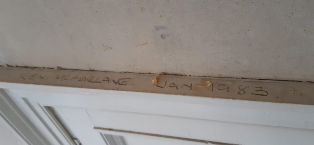 Totally unrelated to the current project, but did you know that it is a sort of tradition for tradesmen to “sign” their work? I learned this on our last renovation, as I often overheard our trades discussing where they’d like to leave their mark. And lo and behold, what did we find when doing this work?